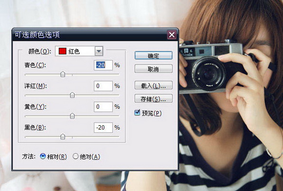 紅色:青色 -20 洋紅 0 黃色 0 黑色 -20;